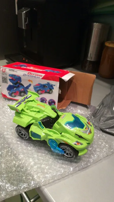 As a powerful but extinct species, dinosaurs are always a great attraction to kids. Therefore, dinosaur toys are always keeping their popular status among all the toys. This Transforming Dinosaur LED Car is exactly what any dinosaur lover would want. Colorful, with LED lights and roaring dinosaur sound, this car automatically transforms into a dinosaur. Your child is surely going to love the transformation and it'll take him back to the Jurassic period once they see the car changes its shape and create a "RAWR" effect. Product Features: Colors: blue, green, and red Automatically transforms into a dinosaur Once the car shapes into a dinosaur, it makes a roaring sound Glowing LED lights Made from durable, non-toxic thick plastic Random, funky music track with the same dinosaur roaring sound.